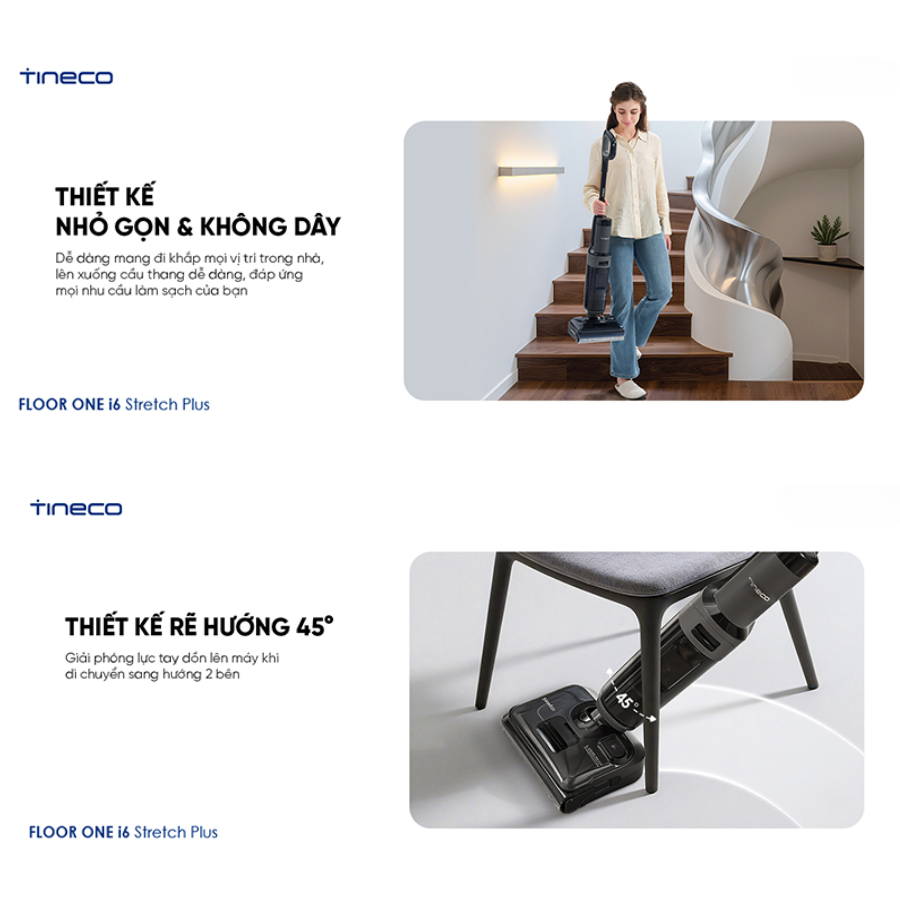 Cuối cùng, với bình nước được tái định vị, cùng khả năng xoay 45 độ linh hoạt và sự tiếp sức từ hệ thống bánh xe trợ lực, người dùng có thể dễ dàng điều khiển Tineco Floor One i6 Stretch Plus mà không mất nhiều sức. Đây là lựa chọn lý tưởng cho những ai cần một giải pháp lau sàn thông minh, hiệu quả và tiện lợi trong cuộc sống hàng ngày.
